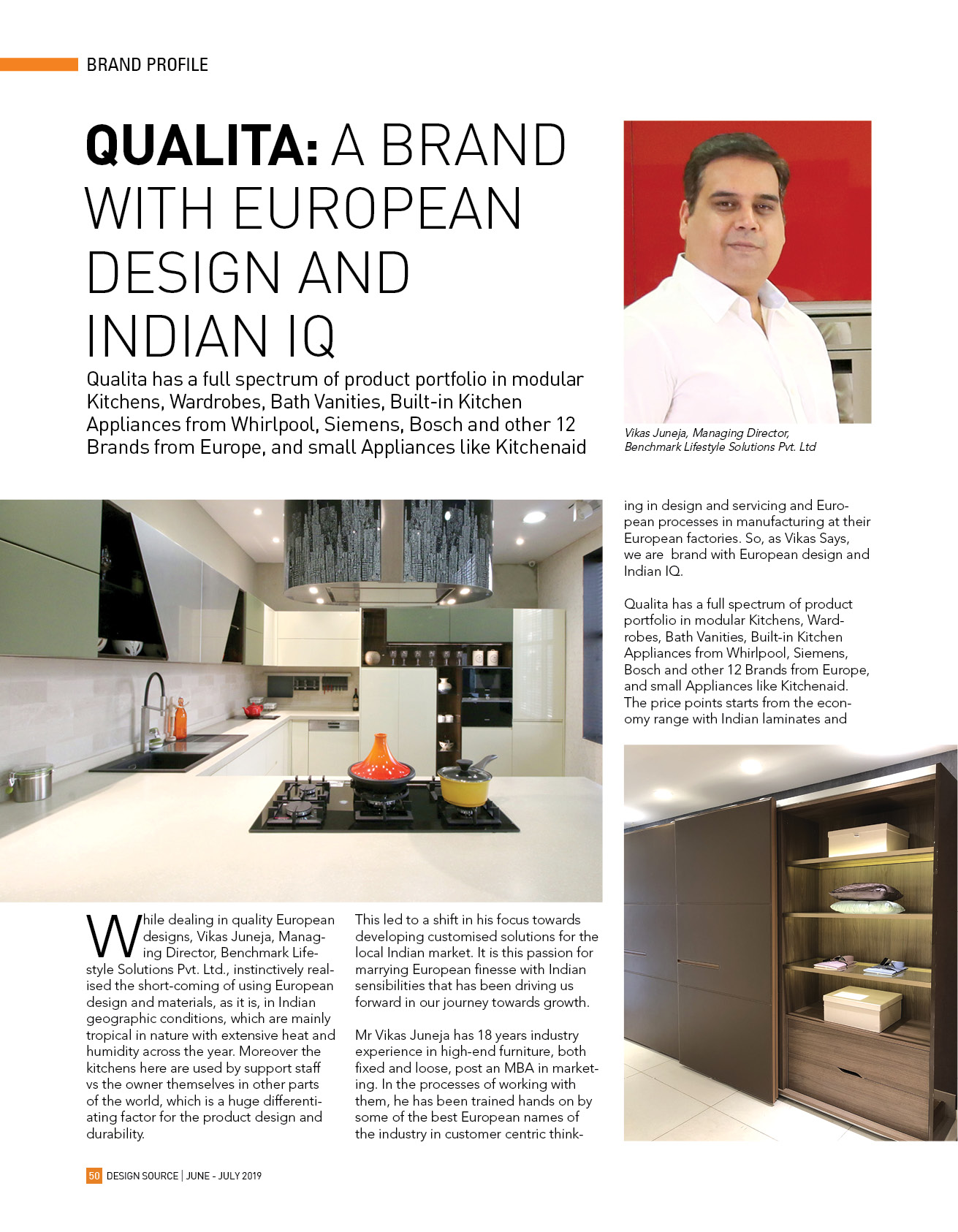 In 2003, he founded Benchmark Lifestyle Solutions, seamlessly blending European craftsmanship with Indian sensibilities to redefine modular kitchens and wardrobes under the brand QUALITA. With 3000+ completed projects, Benchmark has earned the trust of architects, designers, and elite clientele including few celebrities.
